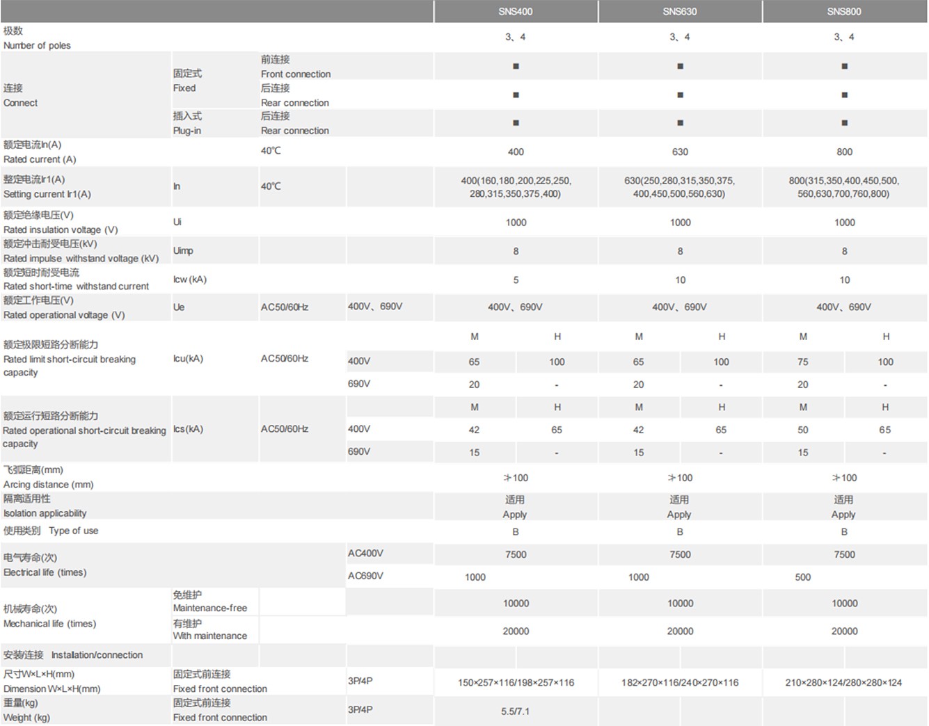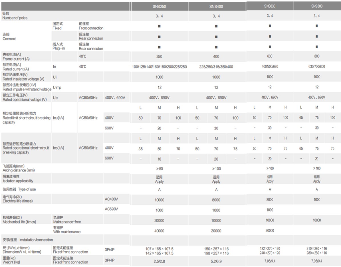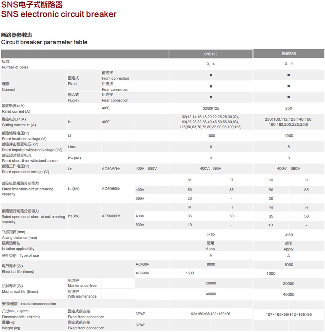 SNS塑料外殼式斷路器(以下簡稱斷路器)是本公司推出的新一代產(chǎn)品,分為三大系列:
