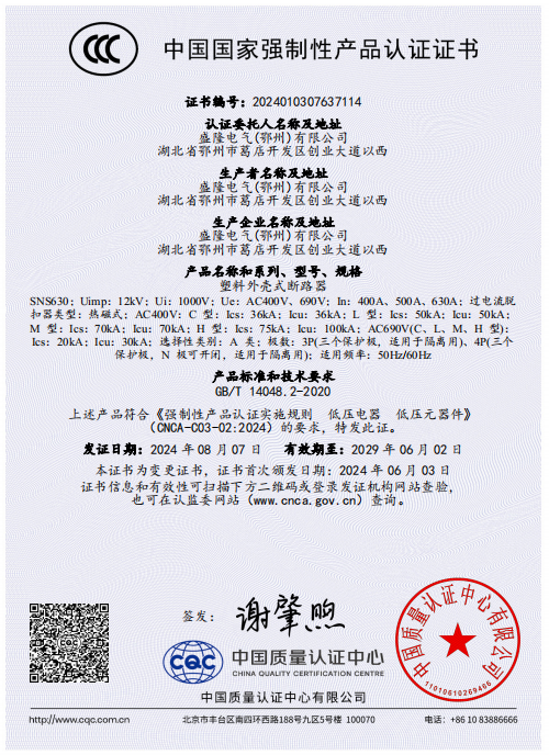 SNS125、SNS250的L/M/H型、SNS400、SNS630的L/M/H型熱磁式及上述規(guī)格四極時(shí)中性極型式為A、B型斷路器可帶“熱過載報(bào)警不脫扣”功能,保證供電連續(xù)性,滿足GB50054第6.3.6條要求。