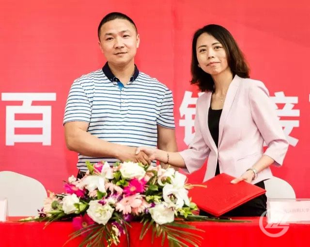 漢紡織大學校企合作促進會簽約儀式,右一為武漢紡織大學機械工程與自動化學院黨委副書記衛東妹,左一為盛隆電氣集團智慧城市建設有限公司總經理韓文