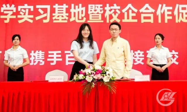 華中科技大學電氣學院盛隆電氣校園俱樂部簽約儀式,右二為華中科技大學電氣與電子工程學院黨委副書記羅珺,左二為盛隆電氣集團副總裁、生產總監聶偉