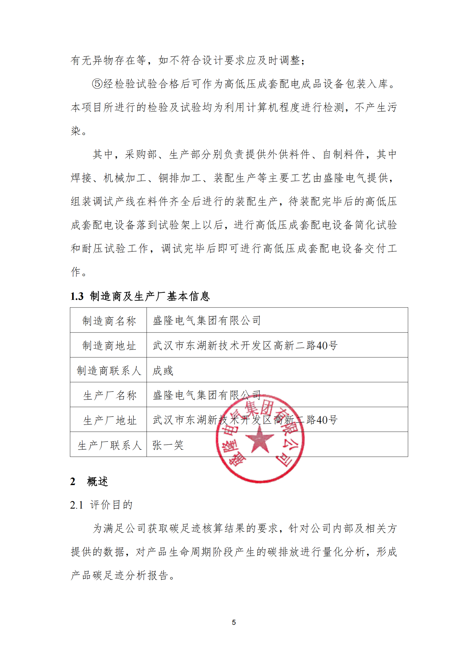 盛隆電氣集團有限公司2024年度產品碳足跡分析報告