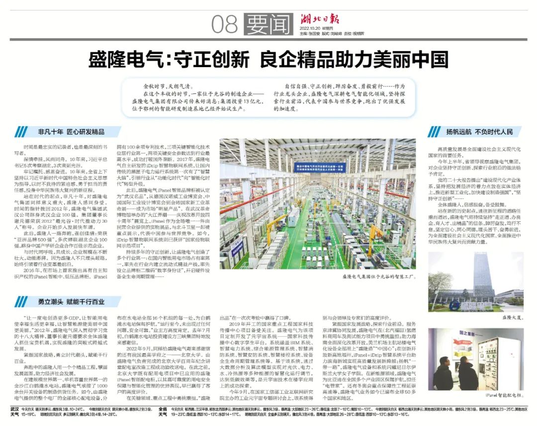 【轉自湖北日報】盛隆電氣:守正創新 良企精品助力美麗中國
